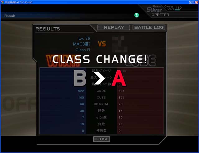 というわけで、ようやくうちの猫子、MAOがCクラス10勝、Bクラス20勝をこなし、Aクラス入りを果たしました!