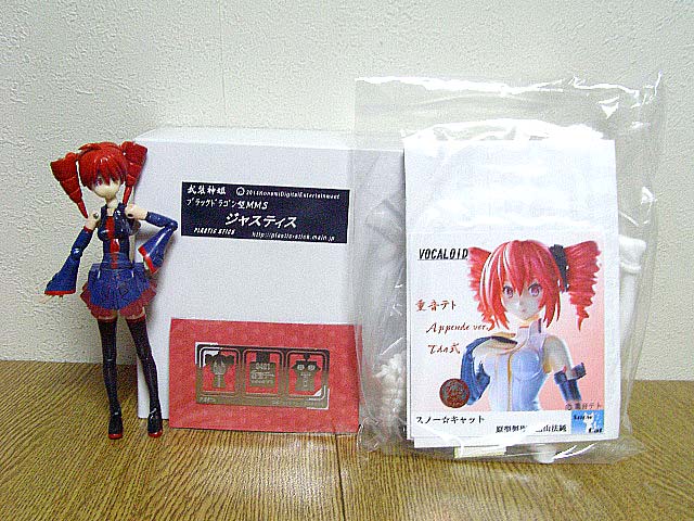 ブラックドラゴン型神姫・ジャスティスと、Tda式アペンドテトさん。ついでに重音ロボ&重音テトブックマーカー。