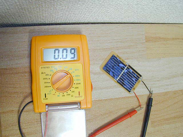 私の部屋は2灯の蛍光灯でしかも切れかかっているのでじつは暗いんですが、この状態で出力0.09V…orz