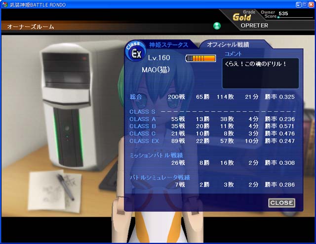 …つ〜い〜に〜、MAOがオフィシャル200戦を消化、64勝114敗21分、勝率0.325で終了。オフィシャル戦参戦不可となりました。
