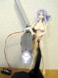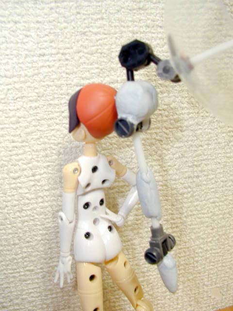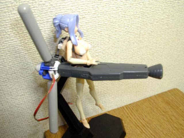 両腕は観測機器という設定。右腕が高精細ハイビジョンカメラ、左腕は複合センサー。作業用に神姫ハンドパーツがマウントされています。