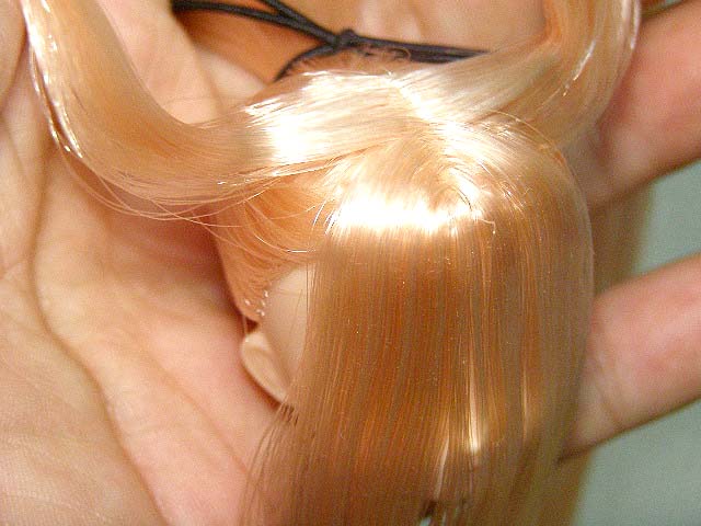 もみあげ部分をとりあえず後ろに回してマスキングテープを裏巻きして仮固定。