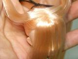 まずはポニーテールを仮止め気味にしてあったヘアゴムを縛り直し、きつめの固結びで固定。