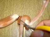 前髪部分を真ん中分けしてうなじの方へまわし、結束用の針金でこちらも仮固定。