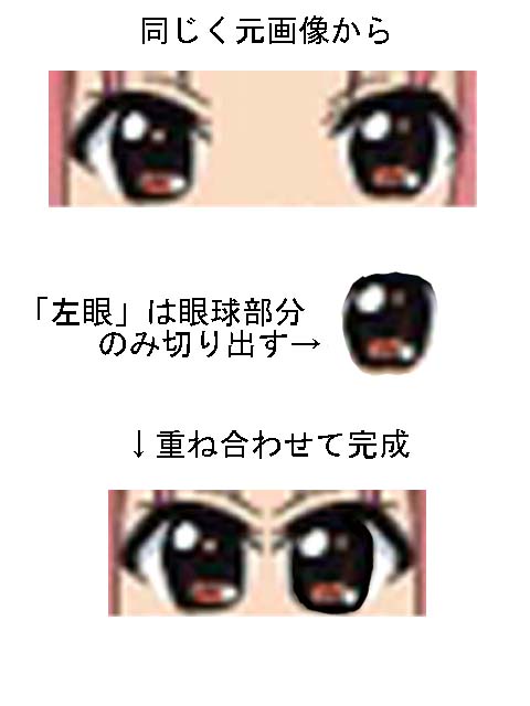 というわけで、彩色されたその画像データから眼の部分を切り出し、フォトショで1.5倍拡大を繰り返して大きめの画像を作成。
